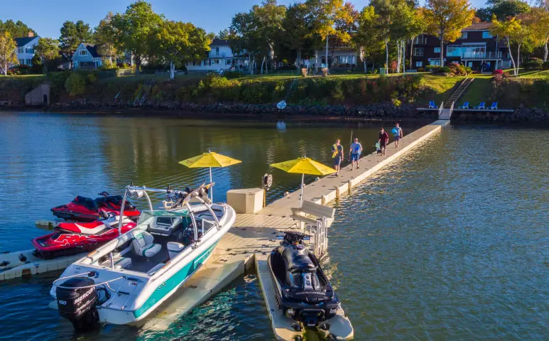 Modular sections snap together with a coupler kit. Add a PWC port, expand a slip, or rearrange next season.